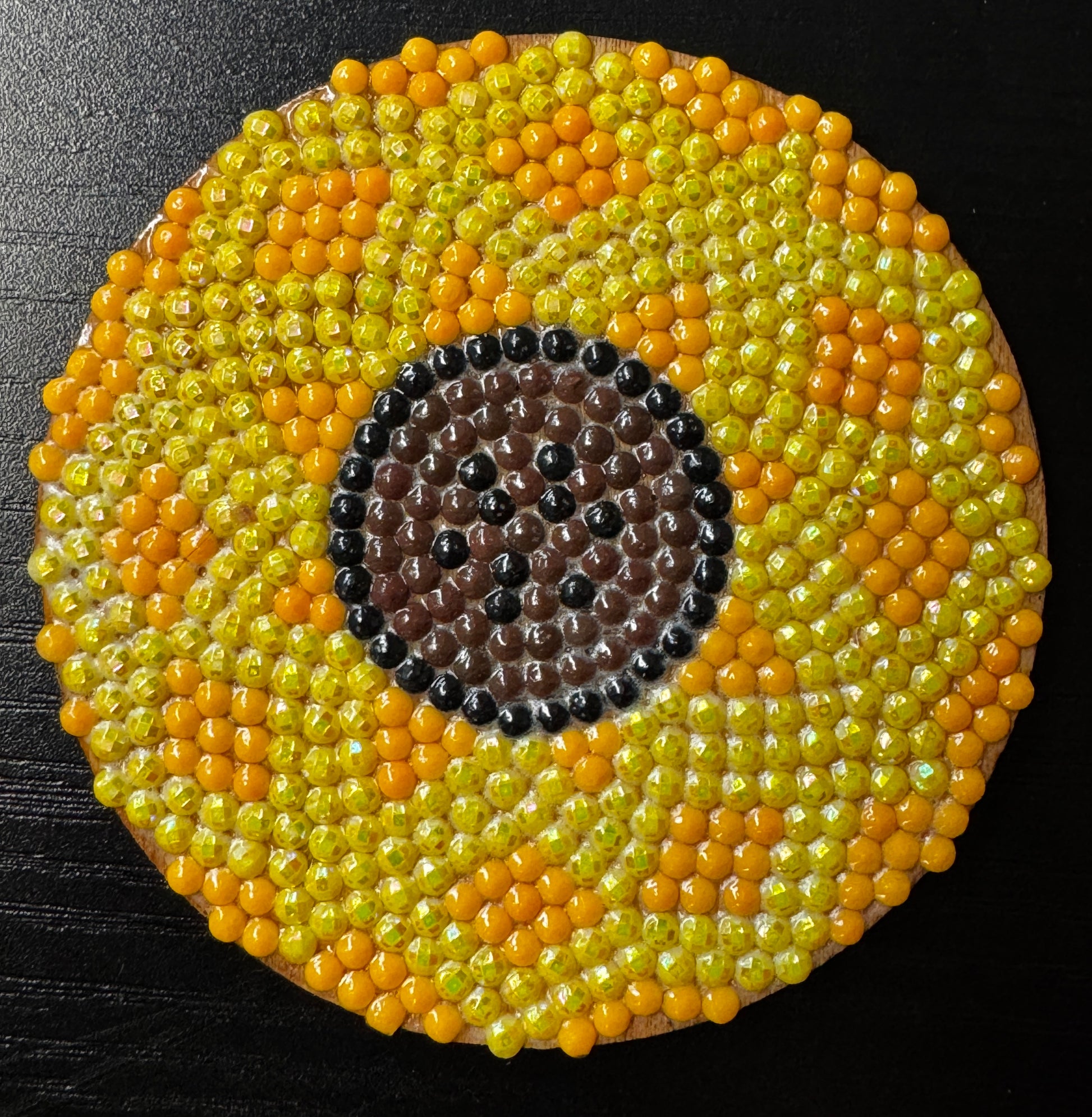 3" circle embellished with diamond dots beads to create a sunflower design.