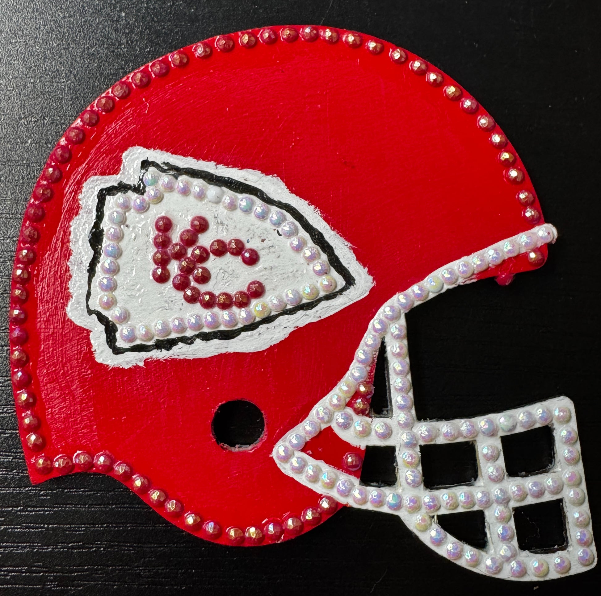 4" Red Chiefs Helmet embellished with diamond dot beads.