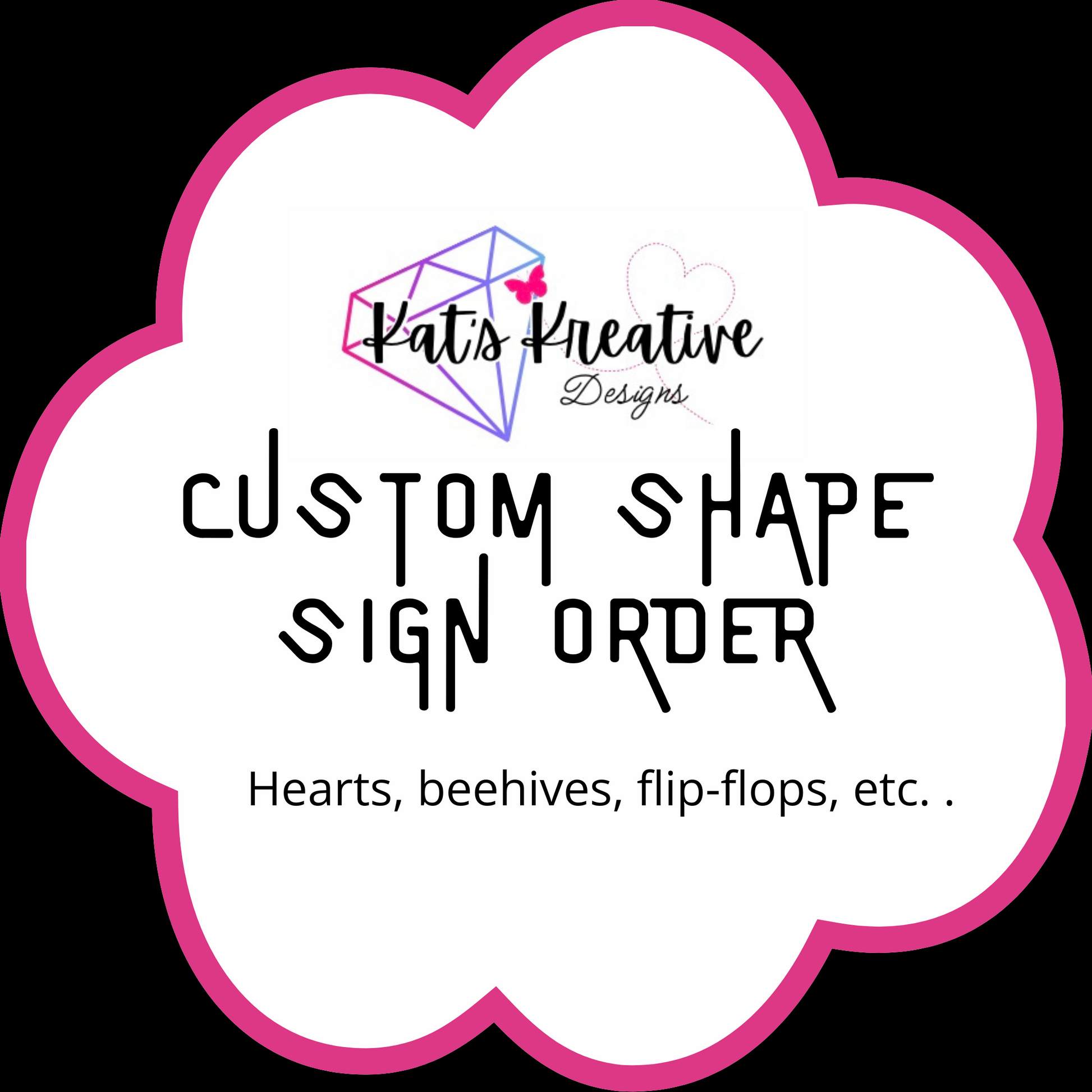 These would be shapes such as hearts, Bee hives, clouds, etc. Signs can have hanging ribbons, a stand for sitting on a table/shelf, or nothing where you can sit it on an easel.