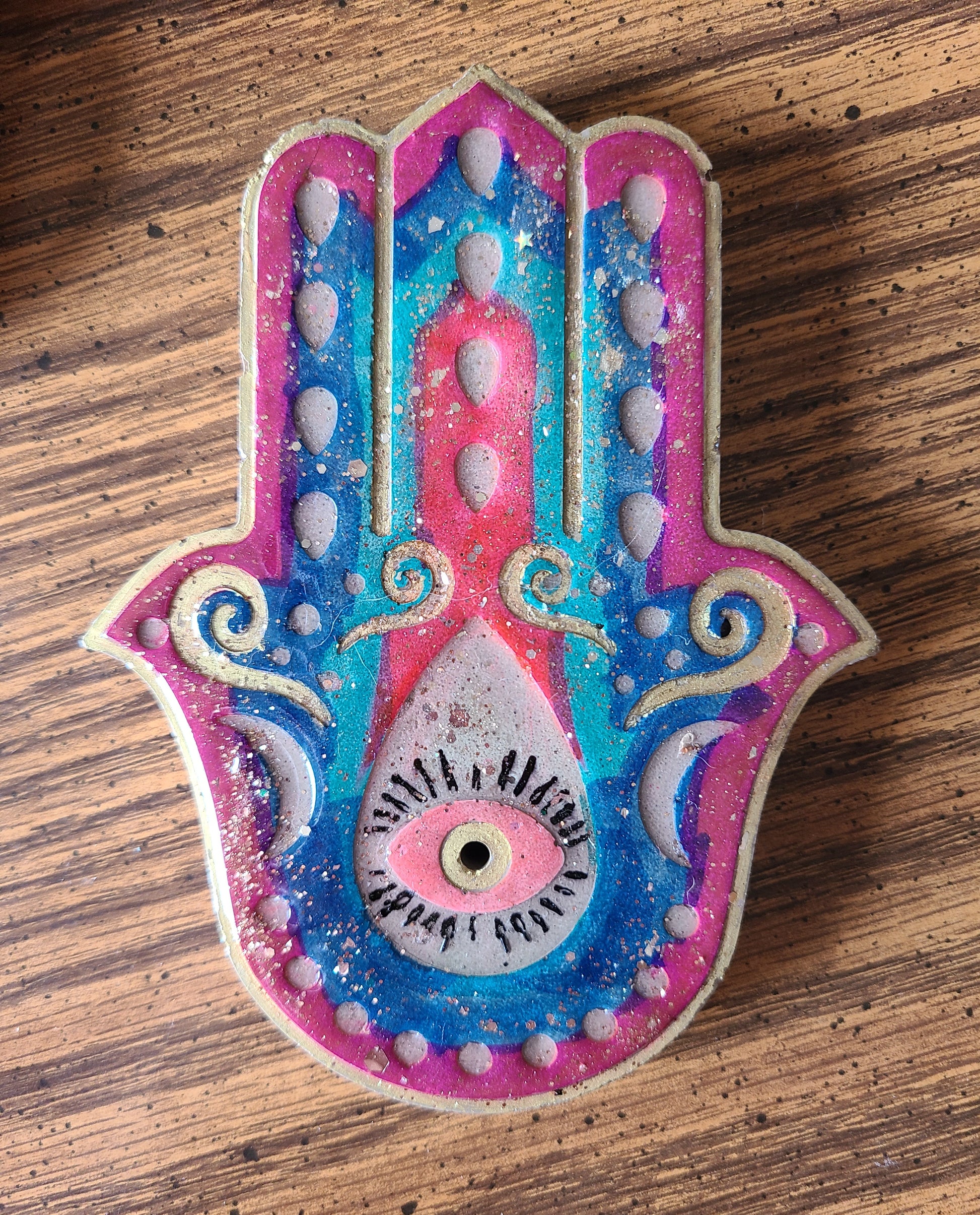 Brighten your space with the vibrant Hamsa Incense Stick Holder. This hand-painted holder will bring a touch of color and style to your home while allowing you to enjoy the soothing aroma of incense sticks. Let the beauty of this holder inspire and reinvigorate your senses!