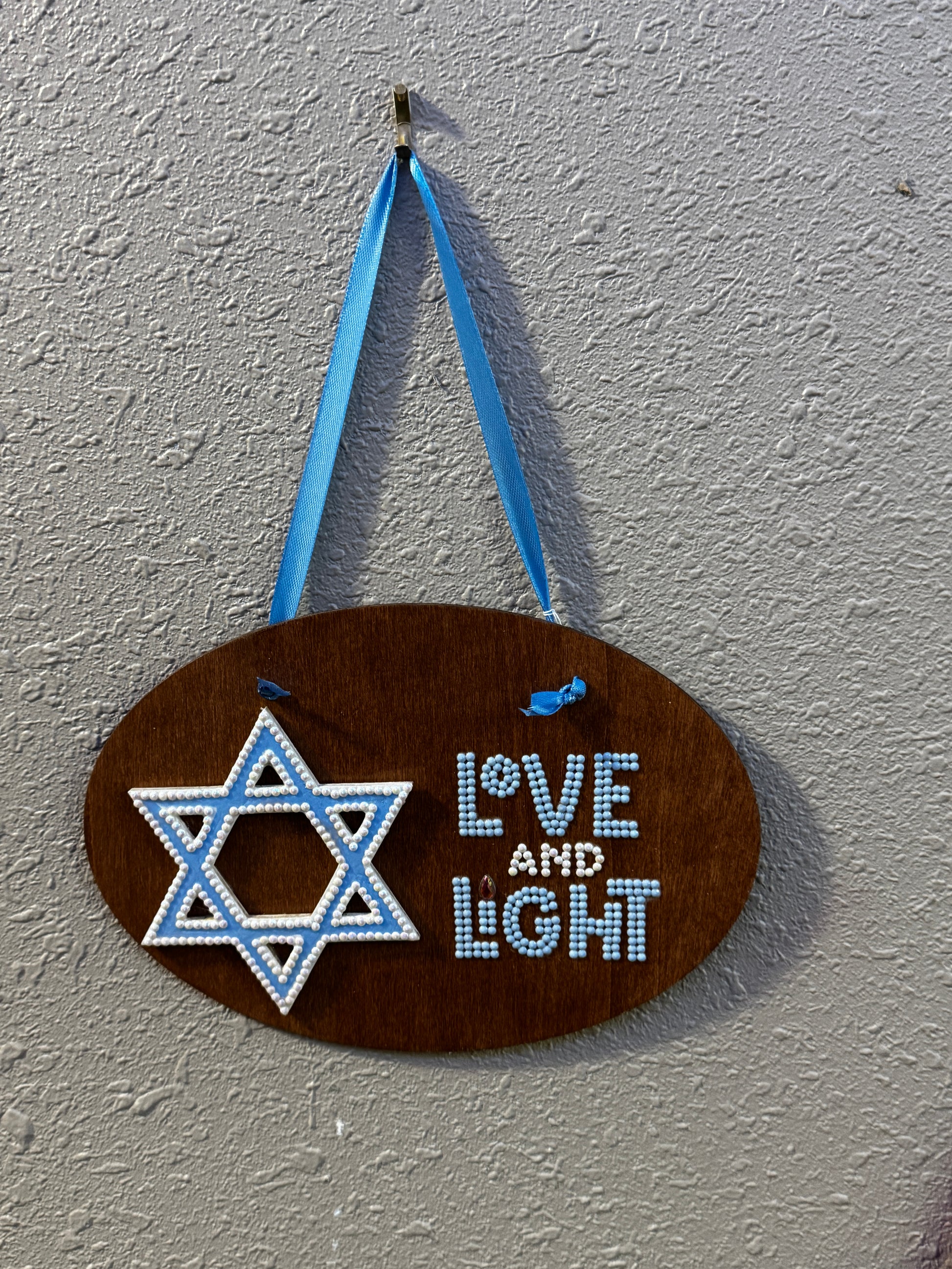 6" oval with an embellished Star of David and the "Love and Light" quote.