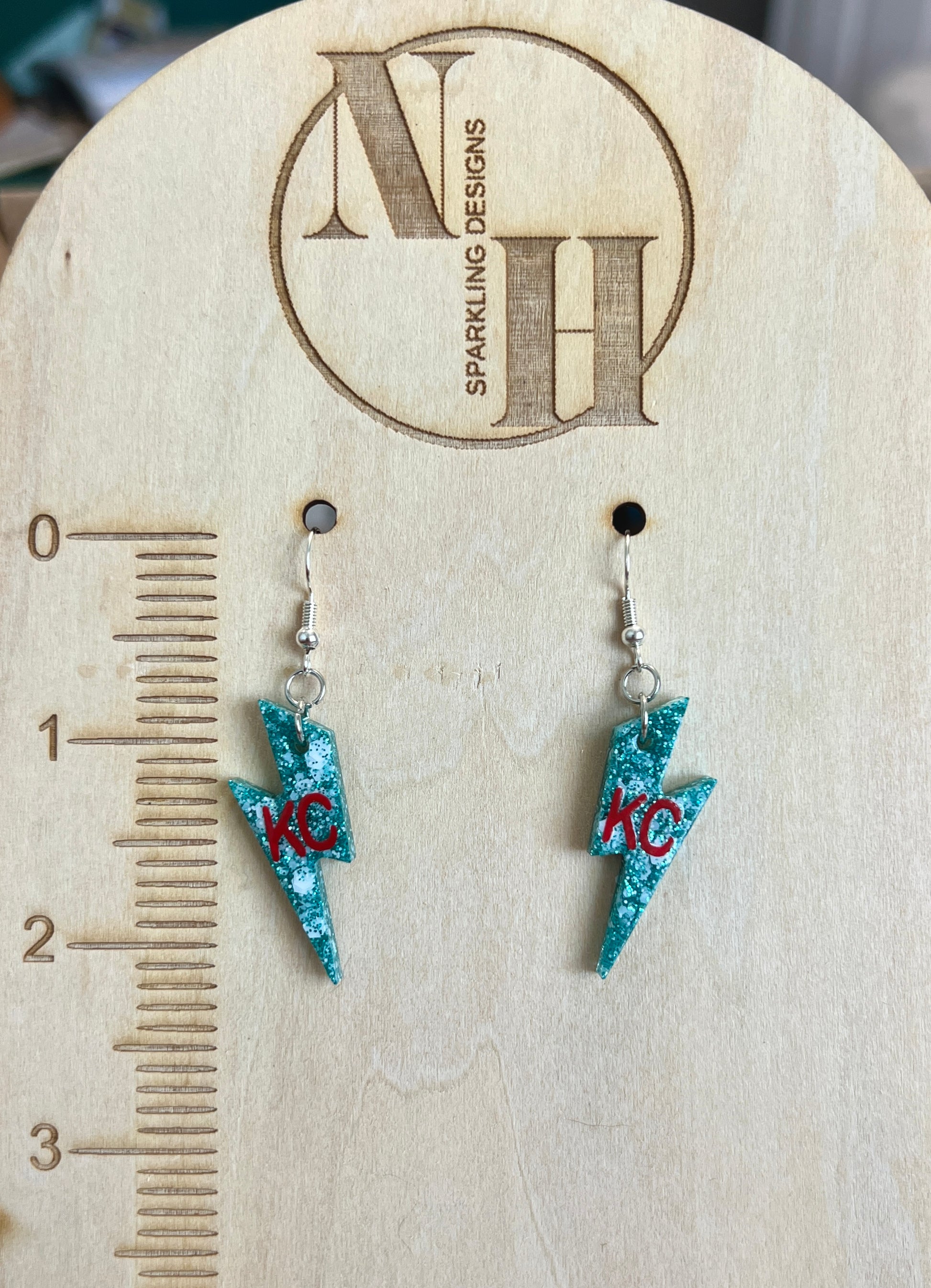 Elevate your game day style with our Lightning bolt KC Current Earrings. Designed with quality epoxy resin and finished with hypoallergenic materials, these earrings are both fashionable and safe for sensitive skin. The sparkling glitter make them the perfect accessory for any fan!
