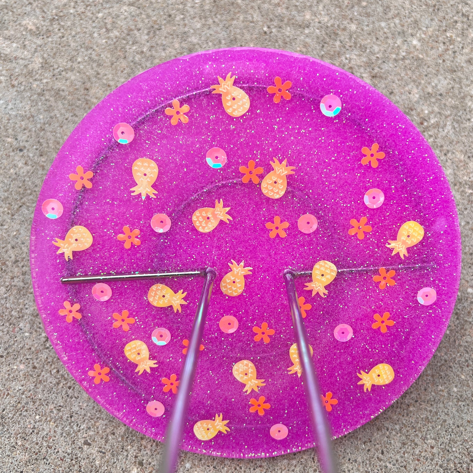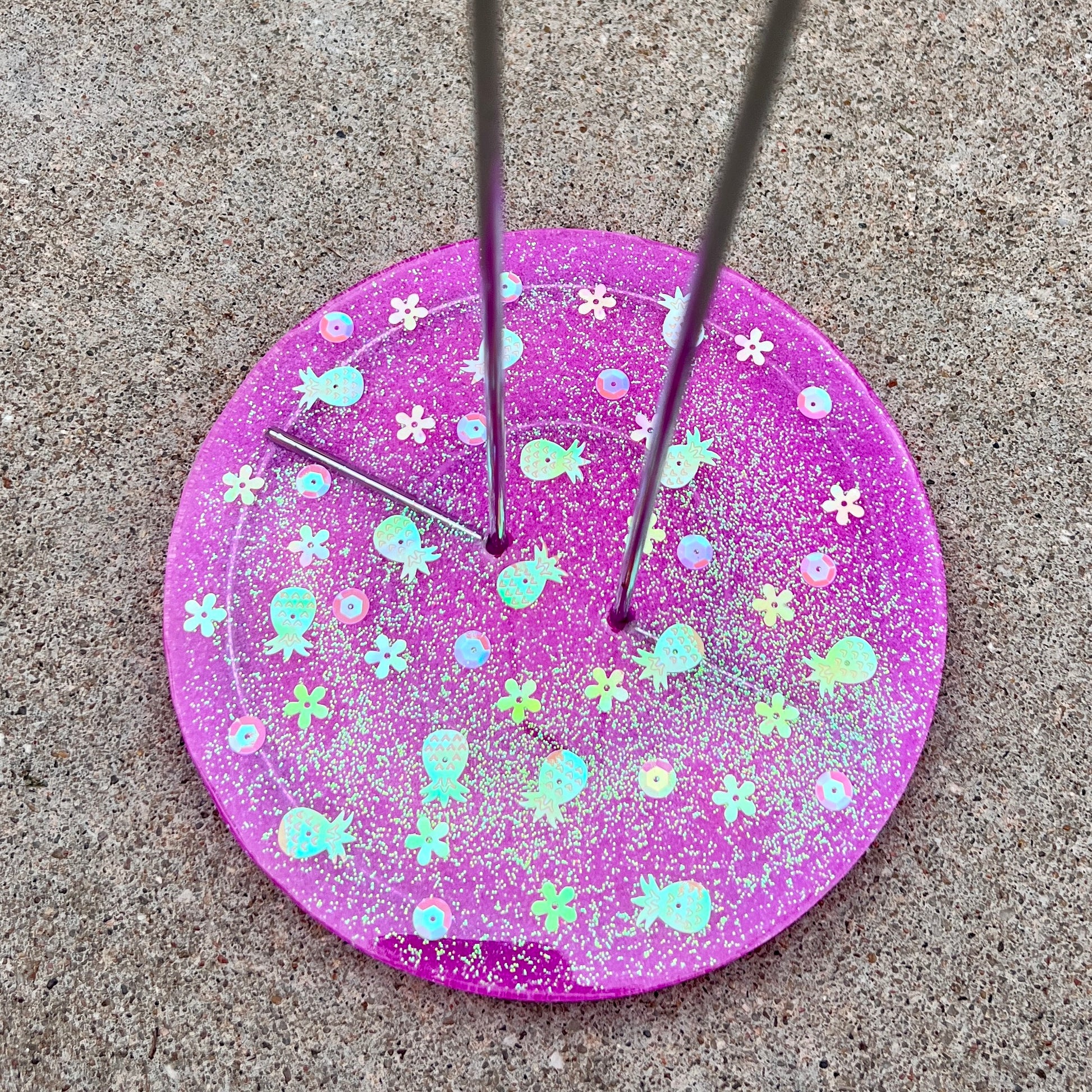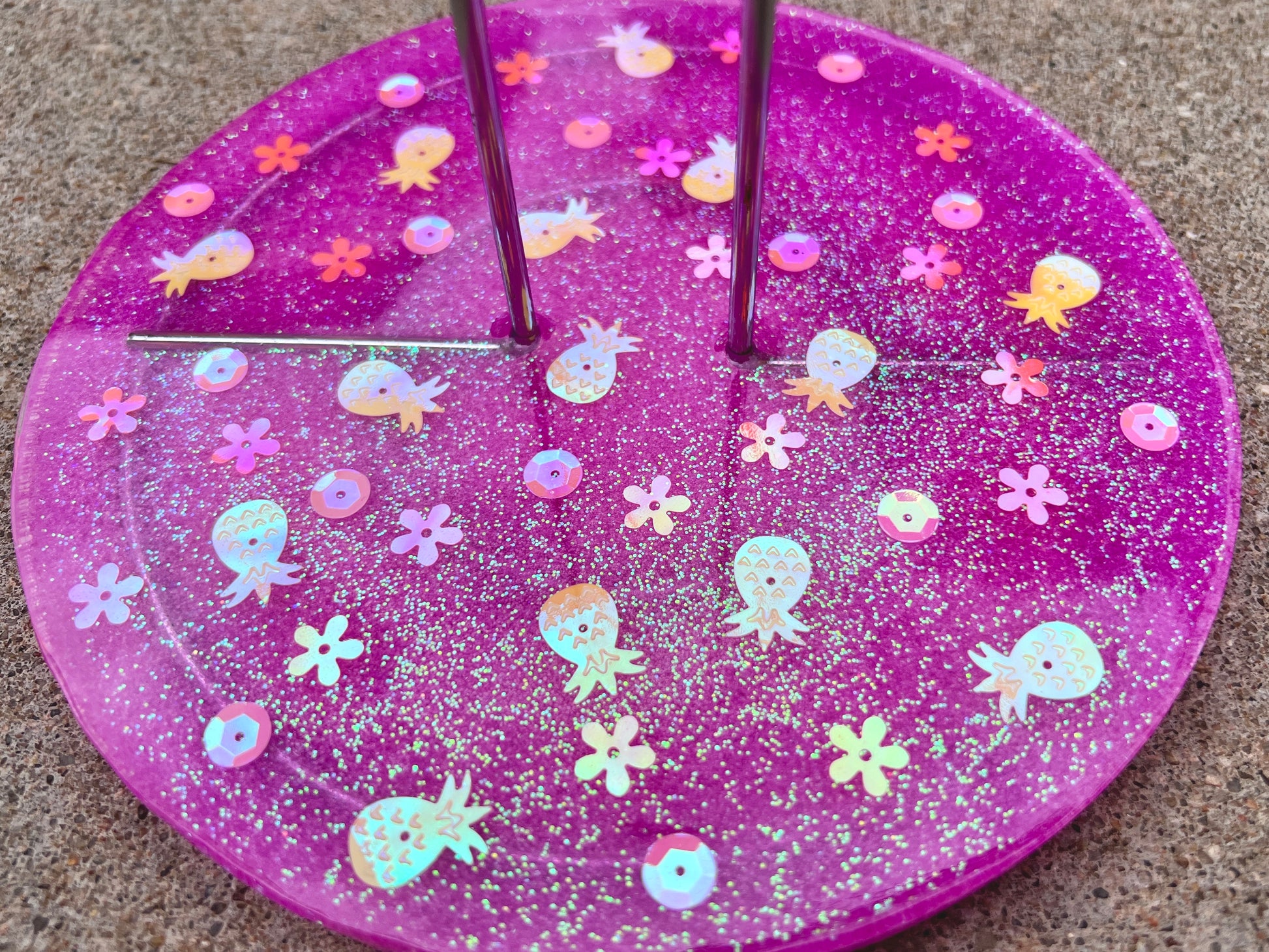 Add a touch of sparkle to your kitchen with our handmade paper towel holder featuring durable epoxy resin and sparkling pink glitter. Perfect for adding a pop of summer to your decor. Keep those pesky paper towels in one place with this unique and stylish piece.