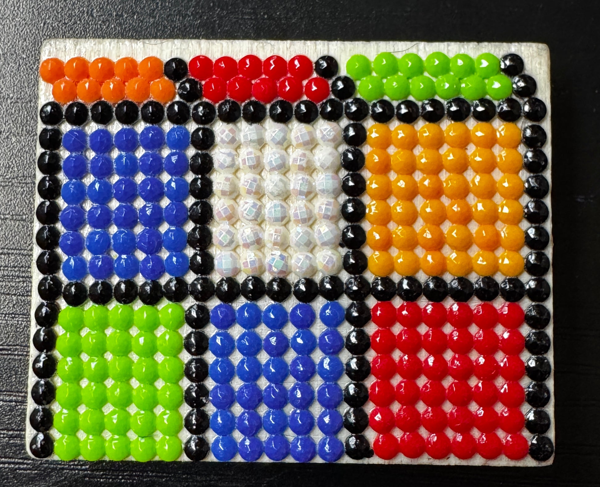 80s style Rubik's cube created with diamond dot beads. (partial cube) About 2" in size.