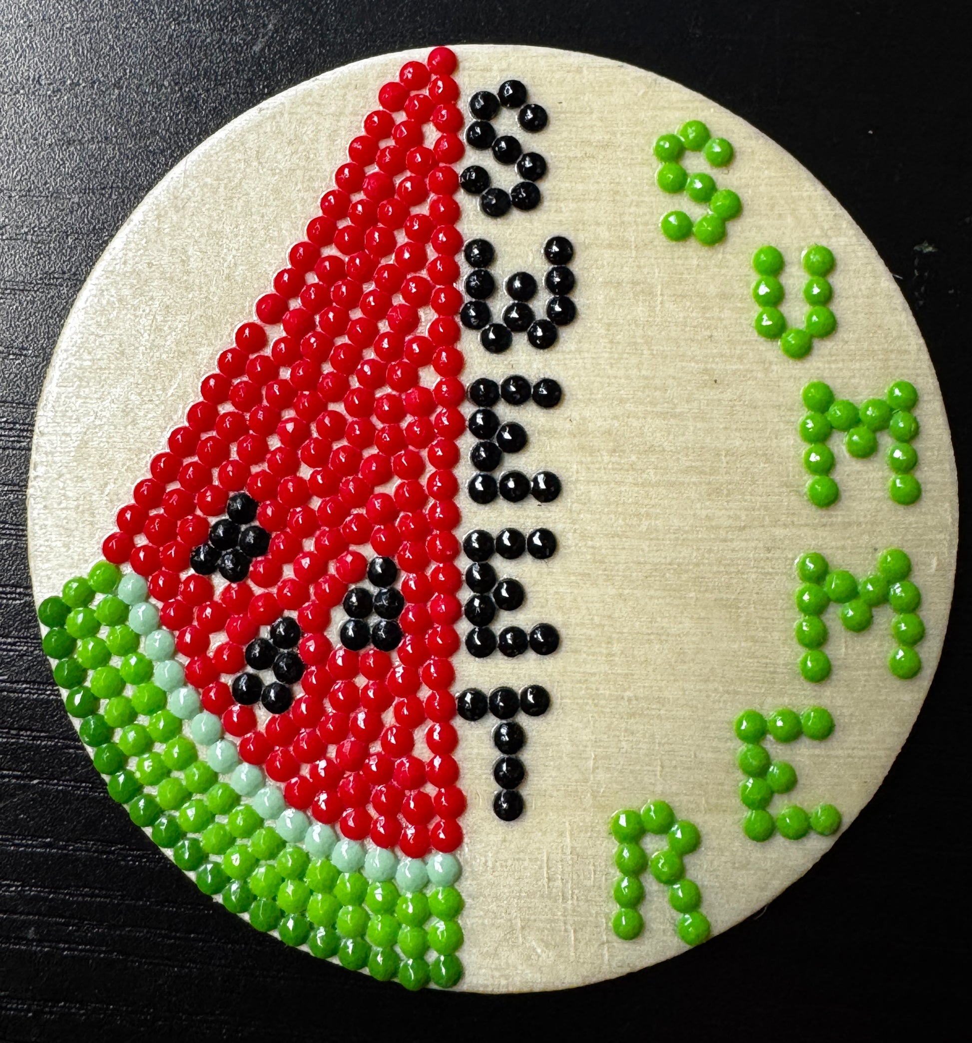 3" circle embellished with diamond dots beads to create a watermelon slice and "Sweet Summer" quote.